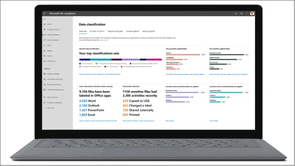Deze oplossing met gevoeligheidslabels is onderdeel van het Microsoft 365 Compliance onderdeel, genaamd Microsoft Information Protection. Dit maakt het mogelijk gegevens te classificeren op veel locaties binnen de digitale werkplek, waaronder postvakken gehost binnen Exchange Online, teams aangemaakt binnen Microsoft Teams, communities in Yammer, persoonlijke opslaglocaties binnen OneDrive, sites op SharePoint, noem maar op. Met Microsoft Information Protection kunnen berichten door medewerkers handmatig van een label worden voorzien, of het systeem kan op basis van bepaalde kenmerken automatisch een label toekennen.