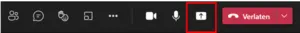 Wanneer je een Teamsvergadering start kan je klikken op de knop met een scherm met een pijltje erin, dit is de delen-knop: