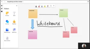 De derde optie is ‘Whiteboard’. Met deze functie deel je letterlijk een wit bord waarop getekend kan worden door iedereen die deelneemt in de vergadering. Op deze manier kan je samen brainstormen en de ideeën uittekenen. De tekening kan je exporteren of via een koppeling delen met anderen. Super makkelijk!