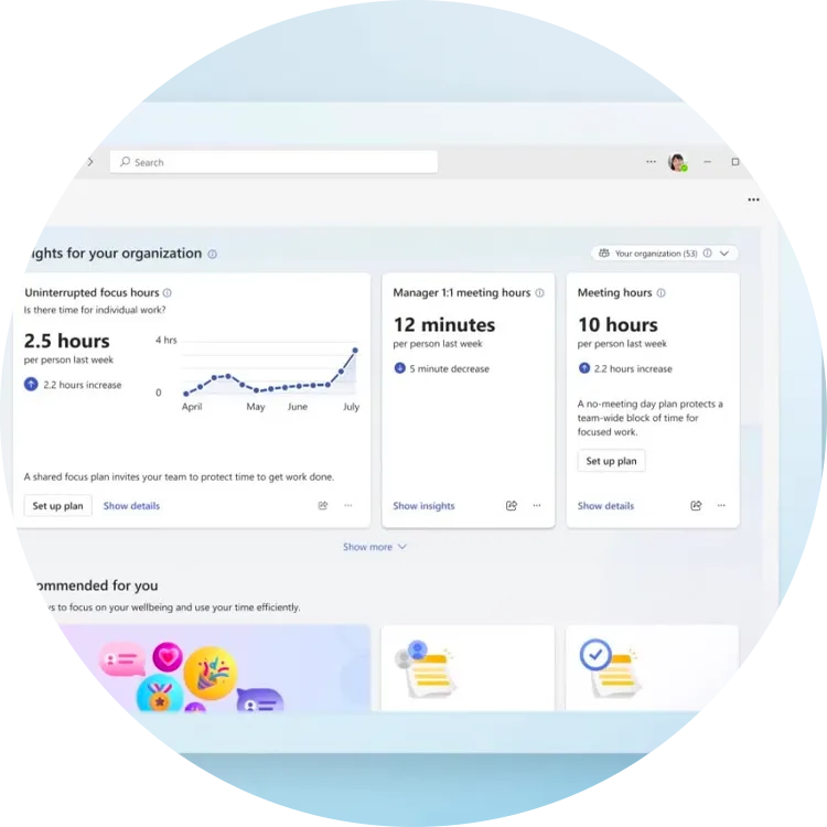 Viva Insights geeft op individueel, managers- en organisatieniveau inzicht over het gebruik van Microsoft 365, focustijd en werkdruk. Want nooit eerder was het zó belangrijk mensen te helpen om alles even los te laten en maximaal te profiteren van hun kostbaarste bezit: tijd.